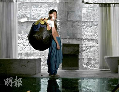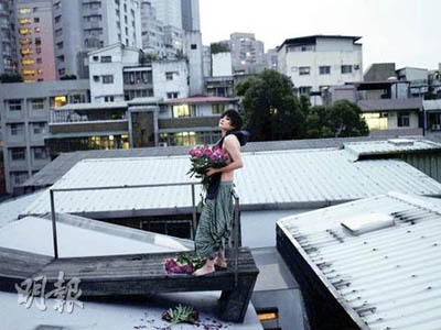 為了表達(dá)“花與女孩”的主題,林嘉欣裸露上半身,只以長發(fā)遮掩胸部,照片的確很有味道,一點(diǎn)色情感覺都沒有。圖片均來自香港《明報》。