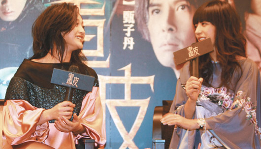 “畫皮”最精彩是一正一邪兩個(gè)女人的奪愛之戰(zhàn),趙薇和周迅都強(qiáng)調(diào)對搶男人沒興趣,趙薇說:“每個(gè)年紀(jì)我的愛情觀不同,現(xiàn)階段的我,學(xué)著瀟灑,不喜歡去搶,成全人家!敝苎嘎犃祟l點(diǎn)頭。