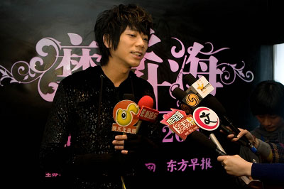 寧浩的新片《瘋狂的賽車》將在本月20日全國公映,昨日來滬宣傳的他,也帶著演員九孔來到摩登上海的頒獎(jiǎng)禮上。擔(dān)任頒獎(jiǎng)嘉賓的寧浩顯得有些靦腆,所有的風(fēng)頭都被首次來滬的臺(tái)灣著名諧星九孔“搶”去了。一直念叨著“1月20日”這個(gè)《瘋狂的賽車》公映的時(shí)間,九孔拼命給自己的新片打廣告。而為了讓臺(tái)下觀眾對(duì)電影和自己更有“印象”,九孔還現(xiàn)場(chǎng)表演了一段拿手的模仿秀。一曲任賢齊的《心太軟》讓臺(tái)下觀眾一時(shí)以為自己是在觀看《全民大悶鍋》。