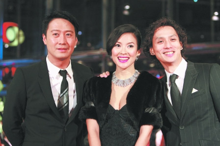 當(dāng)?shù)貢r(shí)間2月10日晚(北京時(shí)間2月11日凌晨),本屆柏林電影節(jié)惟一的參賽華語片《梅蘭芳》在柏林電影宮舉行了盛大的歐洲首映儀式。當(dāng)天柏林的天氣并不是很好,《梅蘭芳》的紅毯儀式還趕上了下雨,但是到場(chǎng)的華人華僑及外國(guó)友人還是將最熱烈的歡呼聲送給了這部“神秘而美麗”的中國(guó)電影。片中兩位女主角章子怡和陳紅無疑是當(dāng)晚紅毯上最耀眼的明星。陳紅身穿藕青色的低胸晚裝,上鑲金色刺繡,非常具有中國(guó)特色,而章子怡則延續(xù)素雅路線,一身藍(lán)黑低胸晚裝搭配黑色皮草披肩,在脖頸千萬鉆飾的映襯下,顯得分外雍容華貴。