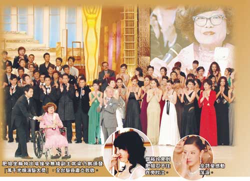 而肥姐沈殿霞自去年9月發(fā)現(xiàn)肝臟有6磅腫瘤后,病情反復(fù),無奈暫停演藝工作靜心在家休養(yǎng),積極對(duì)抗病魔。從事演藝工作40多年,肥姐貢獻(xiàn)良多,有“開心果”之稱。昨晚無線于《萬千星輝頒獎(jiǎng)典禮》特別頒發(fā)“萬千光輝演藝大獎(jiǎng)”給肥姐作表揚(yáng),她親自出席領(lǐng)獎(jiǎng),全體臺(tái)前幕后及觀眾站立致敬,掀起整晚高潮。坐在輪椅的肥姐精神不俗,以堅(jiān)定口氣說:“我不會(huì)輕易放棄我喜歡的電視事業(yè)!辈簧偎噯T看到肥姐都忍不住感觸落淚,在喜悅背后帶點(diǎn)傷感。