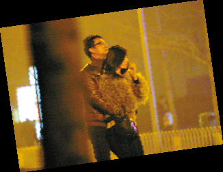 本月24日晚,北京,音樂才子李泉和友人在保利大廈后的餐廳共享大餐后,和一名身穿裘毛大衣的神秘女子一起離開,站在路邊等待出租車時,李泉表現(xiàn)得憐香惜玉,毫不避諱地將這名女子攬在懷中,極為親密曖昧,兩人關(guān)系可見非同一般。當(dāng)這名女子轉(zhuǎn)向鏡頭時,記者認(rèn)出是MTV全球音樂電視臺主持人朱珠。兩人卿卿我我,沉醉在甜蜜氛圍中,完全忘卻了北京的寒風(fēng)。之后,兩人乘坐出租車離去,上車后,終于激情難耐,相擁熱吻。