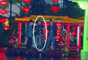 晚上10點(diǎn)多,周杰倫出現(xiàn)在白鷺洲公園。他乘坐的商務(wù)車前有警車開道、后有兩輛車跟隨,四輛車一路呼嘯開到碼頭前。杰倫一下車,四下頓時(shí)騷亂起來,很多人撲上前要把周杰倫拍下來。幾名警察把杰倫圍得嚴(yán)嚴(yán)實(shí)實(shí),送上了船,這才安靜下來。隨后,一船開道,杰倫乘坐的“聚寶號(hào)”緊隨,后有兩條船“斷后”。周杰倫的秦淮河之旅終于正式開始。
