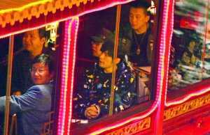 記者想詢問這條船上一個(gè)座位多少錢,“聚寶號(hào)”導(dǎo)游戴小姐卻告訴記者:“這條船一般不租,只有領(lǐng)導(dǎo)才能坐!碑(dāng)夜,這條船上還有秦淮區(qū)政府的幾名領(lǐng)導(dǎo),但因?yàn)榻軅悂砹,船上一切似乎都是為杰倫所設(shè)。原本船內(nèi)的卡拉OK放著古樸的音樂,大家要導(dǎo)游換成了周杰倫的《千里之外》,全都聽得津津有味。