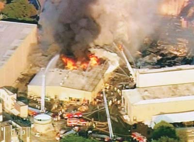 起火點(diǎn)是影城內(nèi)一個(gè)攝影棚,事發(fā)當(dāng)時(shí)可能進(jìn)行著拍攝工作,而且發(fā)生過至少一次爆炸。濃濃黑煙竄上數(shù)十米的高空形成蘑菇云,消防局一度派出直升機(jī)到現(xiàn)場(chǎng)上空灑水滅火。