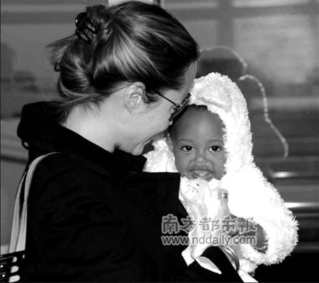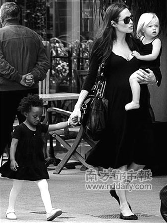 布蘭吉說:“全家在一起就像在聯(lián)合國辯論大廳里工作,這也是夫婦倆的計(jì)劃之一,他們要求所有養(yǎng)子、女都會(huì)說自己出生國的語言,希望等他們長大后能回到那里從事人道主義事業(yè)!奔彝ブ薪^大多數(shù)英語是從6臺(tái)永遠(yuǎn)開著的電視機(jī)里發(fā)出的,每個(gè)人享有一臺(tái):朱莉喜歡看CNN新聞?lì)l道,皮特總粘在運(yùn)動(dòng)頻道,馬多克斯喜歡看動(dòng)畫片,剩下的孩子給他們放什么就看什么。一天中門鈴要響十多次,都是時(shí)尚夫婦購物后送貨上門的,除了大量的玩具就是服裝配件,偶爾也有生活必需品。房子里的噪音指數(shù)之高,通常只有大叫才能讓別人聽見,要想安靜思考絕對(duì)要等到半夜。