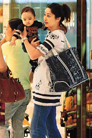 李克勤愛(ài)子樣子精靈可愛(ài),盧淑儀抱他逛商場(chǎng)十分搶眼。
