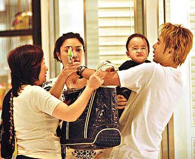 作為父親的克勤,看見(jiàn)兒子不?摁[,急得立刻從太太手中搶過(guò)孩子來(lái)抱,外母則從手袋拿出一件玩具逗弄外孫,盧淑儀又在袋中拿了其他玩具出來(lái),但立仁仍不肯收聲,直至盧淑儀扮鬼臉引他笑,兒子才定下來(lái),眾人見(jiàn)到孩子乖乖被克勤抱在懷中,終于可以松一口氣。