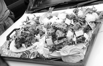 昨天,晨報(bào)記者和數(shù)家香港媒體同行在通往UmaParo酒店的道路上苦苦守候了一天,想盡了一切辦法試圖獲得婚禮核心區(qū)的消息。最后,梁朝偉、劉嘉玲也被記者們的誠(chéng)意所打動(dòng),特地準(zhǔn)備了蛋糕給記者帶下山來(lái)。不過,面對(duì)蛋糕和可樂,饑餓的記者們的第一選擇卻不是分而食之,而是迅速掏出相機(jī)一陣狂拍。