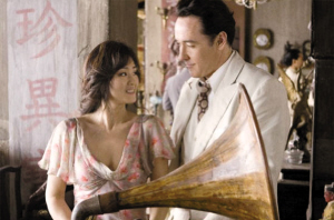劇照中,發(fā)哥身穿風衣,頭戴紳士帽, 活像28年前在《上海灘》中飾演的許文強。發(fā)哥無論身材與外貌,均與當年無異。至于曾在張藝謀電影《搖啊搖!搖到外婆橋》中飾演歌女的鞏俐,這次也重施故伎,以濃濃的女人味誘惑兩位男主角。而在另一張劇照中,身穿低胸長裙的她,與因合作而傳緋聞的約翰·庫薩克深情對望。(王文)