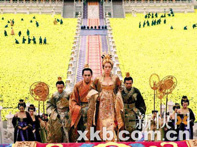 昨日上午11點,第17屆金雞百花電影節(jié)新聞發(fā)布會在大連的富麗華酒店如期舉行,來自全國各地的百余家媒體記者們都齊聚一堂,聽電影節(jié)組委會關(guān)于提名影片規(guī)則方面的老調(diào)重彈。正當(dāng)大家都有點昏昏欲睡的時候,一位來自吉林某電視臺的記者突然提出了一個問題:“為什么讓大眾評委觀摩的影片由最初決定的10部變成了9部,獨獨缺了《滿城盡帶黃金甲》(以下簡稱《黃金甲》)?”臺下的記者們聞言頓時議論紛紛,而臺上的電影節(jié)領(lǐng)導(dǎo)們也都表現(xiàn)得十分意外,由此引發(fā)了電影節(jié)開幕最大的話題——《黃金甲》為何退賽了?