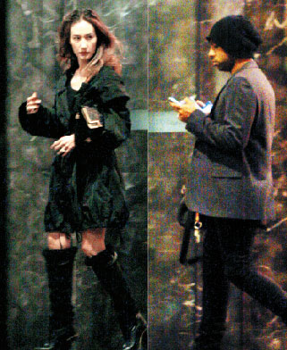 記者在外繼續(xù)等候,大約6點,Maggie Q的助理出門坐車離開。晚上10點左右,助理返回,過了一會Maggie Q和一位年輕的黑人男士出現在公寓大堂,Maggie Q精心化了妝,穿著黑色超短裙和皮靴,亭亭玉立但眼神冷酷,很有點女殺手的感覺,不知是否還沉浸在角色的情境中(Maggie Q在《狼災記》中扮演狼女)。跟在Maggie Q身后的那位黑人男士看上去大約20多歲,穿著一件深色西服和黑T恤,相貌樸實溫和,邊走邊擺弄手機。