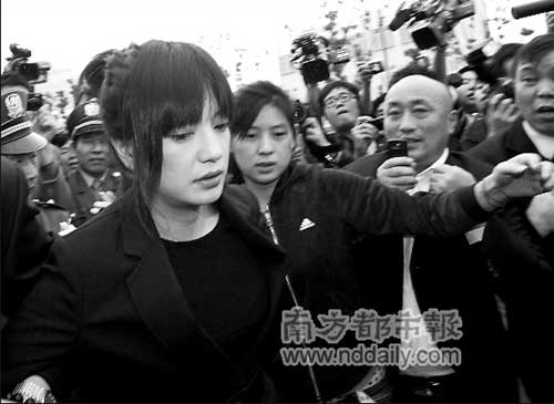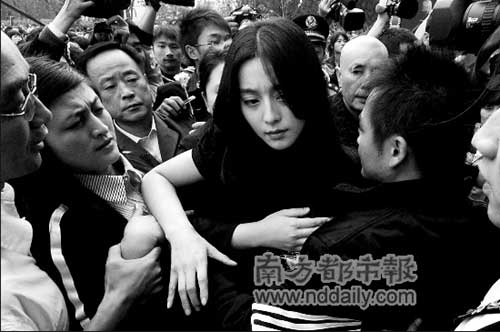 來為恩師送行的范冰冰、趙薇就沒有那么幸運。據(jù)說,兩人原本打算從正門進(jìn)入,卻接到提前到達(dá)的電影局副局長江平的電話,安排兩人改從地下停車場或者側(cè)門進(jìn)入。等范冰冰到了側(cè)門,發(fā)現(xiàn)人比正門還多,只好又繞到正門進(jìn)入。有記者撰文稱:“范冰冰先是被人群沖散,不得已而走了正門,沖過重重人群進(jìn)入大廳,她的臉被擠得幾乎變形,表情也極度痛苦。經(jīng)紀(jì)人和司機為了保護(hù)她,差點和圍觀的拍照者打了起來,范冰冰見狀忙大叫,‘不要打了!’”