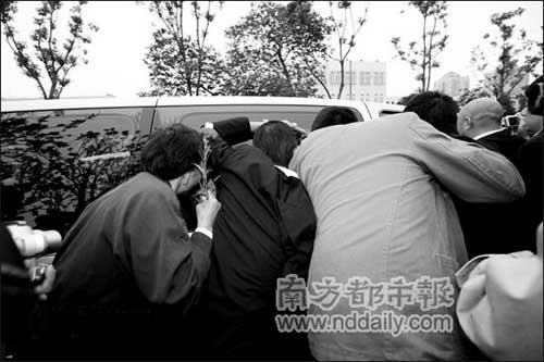 前日下午,國內(nèi)演藝界人士前往謝晉追悼會,向這位曾是幾代人精神坐標(biāo)的著名導(dǎo)演做最后的告別。沒有想到的是,一個原本充滿悲情的場面最后卻出現(xiàn)令人遺憾的一幕:除了來向謝晉致意的人們,更有一些來追星的、來湊熱鬧的,甚至來偷記者相機的……演員范冰冰、趙薇更是被人踩、抓,要使出渾身解數(shù)才能走進(jìn)謝晉的靈堂,范冰冰更被指與媒體發(fā)生沖突,昨日她的經(jīng)紀(jì)人向本報表示:現(xiàn)場確實太混亂。