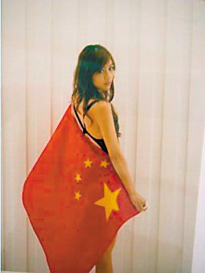 此次曝光的陳怡這批寫真主打性感牌,不過背景卻換成了各國國旗。引發(fā)爭議的是一張寫真———陳怡身著黑色泳衣蜷縮在沙發(fā)上,頭臥日本國旗,而將五星紅旗壓在身下。此舉激起眾多網(wǎng)友的不滿。