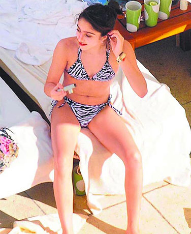 中新網(wǎng)12月9日電 “娜姐”麥當娜赴南美巡演,女兒蘿狄絲跟著去玩,在飯店泳池畔日光浴。今年12歲的她剛開始發(fā)育,卻學(xué)好萊塢女星穿上比基尼秀身材。