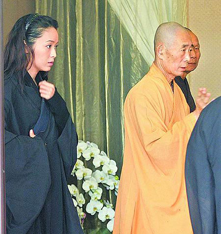 侯佩岑(左)參加父親頭七法會(huì)。