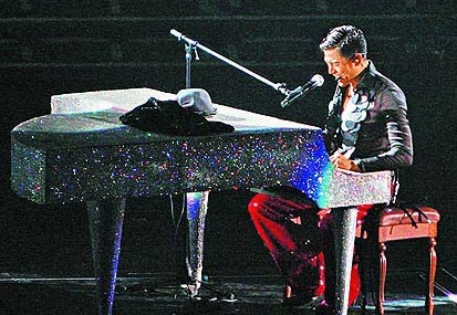 此外,他還苦練2個(gè)月鋼琴,展現(xiàn)動(dòng)靜皆宜的誠(chéng)意,他說(shuō):“我每天半夜洗完澡后練琴,是拚命記下來(lái)的。”但前晚初彈《三岔口》時(shí),因太緊張頻出錯(cuò),他說(shuō):“后面彈不好,干脆重來(lái)好了!睕](méi)想到他重彈了5遍,最后說(shuō):“彈鋼琴好難喔!你們以為我是周杰倫啊!”流露可愛(ài)一面。但他的國(guó)語(yǔ)隨緊張變得更不輪轉(zhuǎn),他苦笑:“我好緊張!國(guó)語(yǔ)一直打‘折’!碑(dāng)場(chǎng)被歌迷糾正是打“結(jié)”,他說(shuō):“我又回到18年前,我錯(cuò)了。”