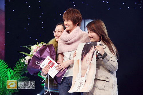 梁詠琪當(dāng)場與黑龍江遠(yuǎn)道而來的粉絲合影。