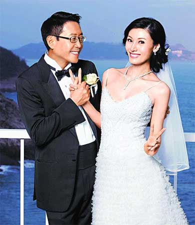 李嘉欣與許晉亨的婚紗照,擺出俏皮姿勢(shì)。