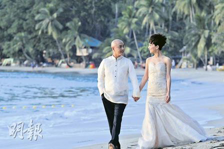 同時,一對新人昨日穿上菲律賓特色禮服,在沙灘漫步拍婚紗照,認真浪漫。