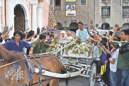 當神父對張衛(wèi)健說可以親太太時,一對新人儼如接吻魚親不停,足足親足一分鐘。兩人簽署結婚證書后,大家擁上爭相和一對新人合照。約于3時30分半,一對新人乘坐馬車離開教堂,張衛(wèi)健情不自禁再親吻張茜,聞風而至的影迷均涌入教堂,和明星合照,再加上過百來自內(nèi)地、香港和菲律賓的傳媒,將教堂迫得水泄不通,好不混亂。