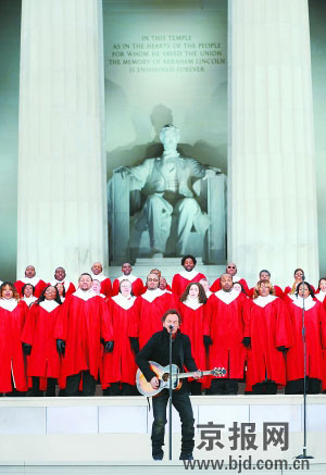 北京時間今天凌晨(當?shù)貢r間1月18日下午),即將上任的美國新一任總統(tǒng)奧巴馬的就職音樂會在華盛頓林肯紀念堂前舉行。碧昂斯、博諾、布魯斯·斯普林斯汀、丹澤爾·華盛頓和湯姆·漢克斯等一線演藝明星到場助陣。