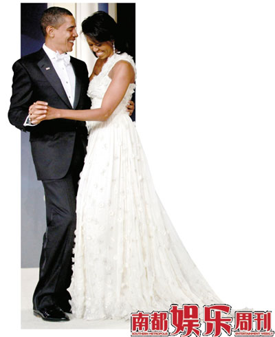 巴拉克·奧巴馬競選的時候,紐約時尚圈競相投靠奧巴馬的名人風(fēng)頭,他和他的夫人早在去年就雙雙被評為《名利場》雜志年度最佳著裝人士。米歇爾1月21 日晚間出席華盛頓會議中心的舞會時的禮服,是一襲白色雪紡曳地長裙,操刀這襲晚禮服的是華裔設(shè)計師吳季剛(Jason Wu),年僅26歲,臺北出生,并不出名的他從米歇爾身上展現(xiàn)了自己的才華,同時讓米歇爾贏得了全世界的喝彩。她領(lǐng)跳第一支舞前,奧巴馬還向嘉賓打趣說:“第一件事,我太太漂亮嗎?”迅速惹來全場歡呼。兩人的時尚風(fēng)頭,一時無兩。