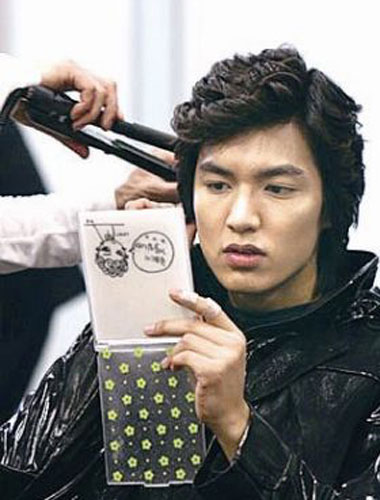 近日,韓國熱播電視劇《花樣男子》中具俊表的扮演者李民浩在拍攝現(xiàn)場的樣子被公開。照片同時公布了具俊表標準“海螺”頭成型的過程,原來,李民浩的頭發(fā)并沒有這樣的彎曲,每次都要靠卷發(fā)棒卷上好久才行。記者 徐丹嵐