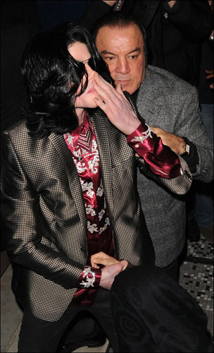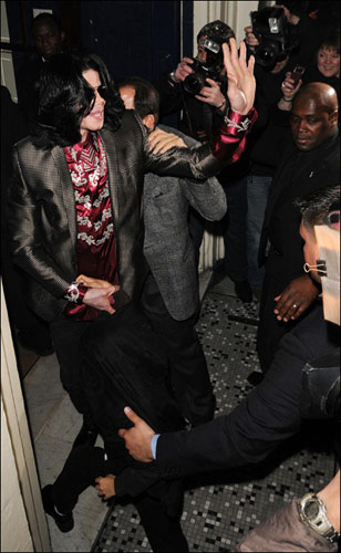 宣布要回歸歌壇,進(jìn)行最后的演唱的天王邁克爾·杰克遜,3月7日帶著自己的兒子一起現(xiàn)身英國(guó)倫敦的 Royal Theatre 觀看音樂(lè)劇,引發(fā)了歌迷們的追蹤狂潮,邁克爾·杰克遜也不愧為見過(guò)大場(chǎng)面的人物,不時(shí)的向歌迷揮手并拋去飛吻。