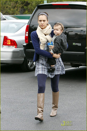 杰西卡·阿爾芭的甜美一向是毋庸置疑的,3月15日杰西卡·阿爾芭帶著女兒和丈夫一起去超市買(mǎi)東西,當(dāng)天的杰西卡·阿爾芭身穿藍(lán)色褲襪配藍(lán)色格子外裙,頭帶藍(lán)色發(fā)卡,而手中的小美妞則是改黑色系搭配,黑色小褲子配黑色小鞋頭帶黑色發(fā)卡,看來(lái)母女都愛(ài)發(fā)卡啊。
