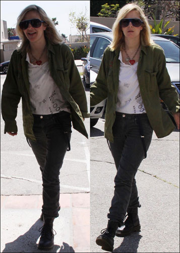 3月24日,打扮越來越有自己風格的德魯·巴里摩爾來到美國加州好萊塢的一個工作室,身穿軍綠色上衣、黑色長褲配軍裝靴的她顯得帥氣而隨性。