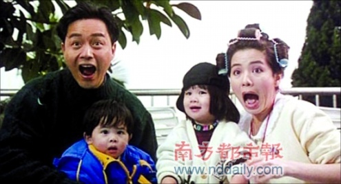 張國(guó)榮這一次的效率比較高,一部電影就生了三個(gè)孩子。其實(shí)很可能還不止三個(gè),只不過(guò)我們看到的是三個(gè),我們還看到大一點(diǎn)的是女兒,小一點(diǎn)的是兒子,還有一個(gè)更小的被發(fā)哥甩來(lái)甩去的看不出是女兒還是兒子。