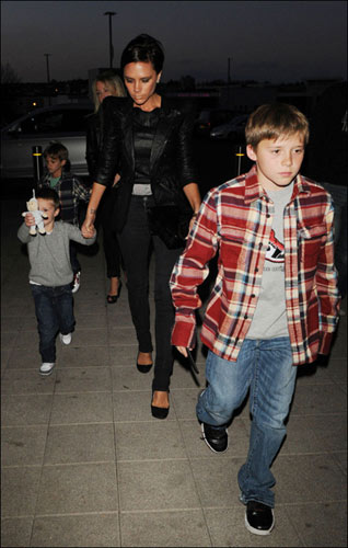 最近的維多利亞好像不喜歡整天黑面的把街道當(dāng)時(shí)裝秀場(chǎng)了,而是喜歡帶著自己的三個(gè)兒子一起去給爸爸小貝吶喊助威。