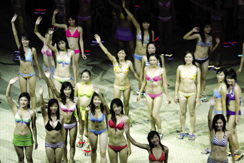 由張藝謀、王潮歌和樊躍“鐵三角”共同執(zhí)導的大型實景演出———《印象·海南島》,昨晚在?谑杏∠髣鍪状喂荨_@是自《印象·劉三姐》、《印象·麗江》“雪山篇”和《印象·西湖》之后的第四個印象系列作品,也是張藝謀繼北京奧運會和殘奧會之后推出的首部作品。因為演出中有上百美女日光浴的場景,有人戲稱:“這是張藝謀在為之前出了‘海灘曬肉’事件的章子怡辯護。”