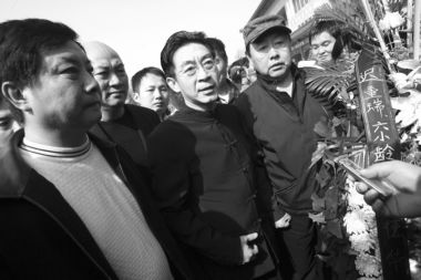 上午10點告別儀式開始,人們排成長隊井然有序地進入靈堂。閆懷禮的遺體安臥在花叢中,面容安詳。“神魂離去芳名百世著清風(fēng),音容宛在勤奮一生傳佳話”的挽聯(lián)十分醒目。靈柩旁,六小齡童、遲重瑞、馬德華等《西游記》主創(chuàng)垂淚站立。當《西游記》主題曲《敢問路在何方》在靈堂響起,眾人嗚咽聲一片。