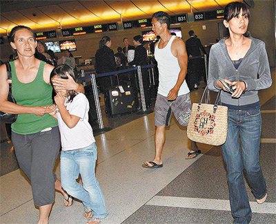 賈靜雯由堂哥、堂嫂和小侄女送到機場,她一臉?biāo)仡、略顯憔悴,穿著灰色運動帽T、牛仔褲跟夾腳拖鞋,弟弟韋斯利因工作已先行返臺。她見記者守候在機場有些訝異,但很快就恢復(fù)鎮(zhèn)定對記者說:“你們辛苦了!比缭敢姷脚畠旱乃f:“我終于可以放心地好好睡覺了!