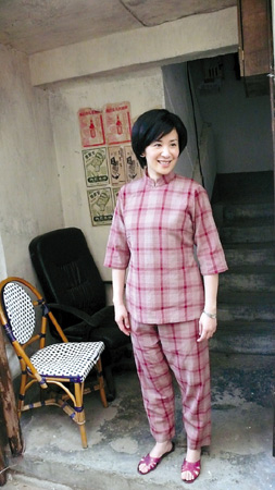 吳君如則比較顯眼,她穿著一身紅格子老式服裝,頭發(fā)是特意粘的假發(fā),很茂盛地搭在額前。她的腳上跟任達(dá)華一樣蹬著塑料拖鞋,身材看上去略有些發(fā)福。吳君如的妝化得挺濃艷,看上去跟環(huán)境有點(diǎn)不搭調(diào)。任達(dá)華卻十分自在,到處跟人聊天,演他們兒子的小演員———在《大搜查》里演陳奕迅兒子的鐘紹圖遠(yuǎn)遠(yuǎn)跑過去,很響亮地喊他“老竇”,他也很從容地回了一聲“哎”。