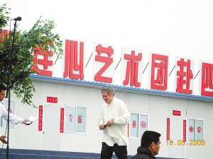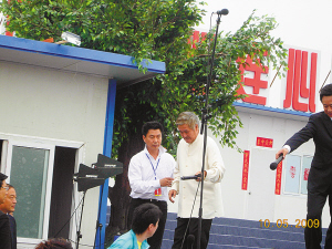 雖然本次“心連心”藝術(shù)團(tuán)在明星陣容上創(chuàng)下了空前的紀(jì)錄,但是劇組在籌備過程中卻是對成本極盡節(jié)約。昨日早上6點(diǎn)半,記者提前來到演出現(xiàn)場,碩大一個舞臺就搭建在板房區(qū)的一個空地上,舞臺背景也是就地取材,由幾間貼著大紅對聯(lián)的板房組成,但看著特別的溫暖。