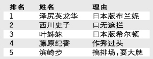 日本一家網(wǎng)站請(qǐng)網(wǎng)友票選“最討人厭女星”排行,澤尻英龍華不負(fù)眾望,擊敗藤原紀(jì)香、濱崎步等人封后。