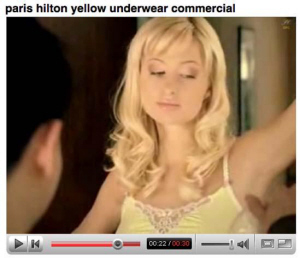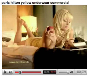《世界新聞周刊》筆者在報(bào)道中戲稱(chēng)希爾頓為“能吃掉男人的酒店業(yè)女繼承人”。廣告片里的希爾頓一頭淡金黃色的頭發(fā),身穿短得不能再短的內(nèi)褲,上身則搭配了一件同色系的比基尼內(nèi)衣,通身都是誘人的鵝黃色。
