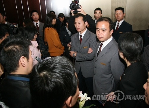 由于今天是婚禮正式舉行的日子,酒店方的保安工作比此前進一步加強。早早將舉行婚禮的二樓列為媒體禁地,對所有進入二樓的人員都進行嚴格盤查,肩負采訪任務(wù)的記者只得再次滲透進入二樓,期間酒店方也曾試圖將媒體趕離二樓但未獲成功。最終媒體被阻擋在二樓宴會廳門外。幾番拉鋸戰(zhàn)不但讓酒店保安人員心里壓力不斷增大,也使雙方的對立情緒上升。