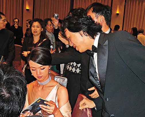 李云迪對湯唯大獻(xiàn)殷勤,在慶功宴上經(jīng)常留意她,明顯對她很有好感,記者問李云迪有沒有看《色》片?他面露尷尬說:“有,但我是看內(nèi)地版(編注:該版本刪剪了三場情欲戲)。”當(dāng)李云迪看見湯唯將其最新CD拿在手中時,他也笑逐顏開。
