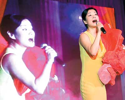 昨晚7點10分,記者趕到解放碑新開業(yè)的重慶國貿(mào)豪生大酒店,酒店的開業(yè)晚宴在9樓的宴會大廳內(nèi)舉行。在近10分鐘的一通開場桑巴熱舞過后,毛阿敏出場了。她用手提著淺綠色長裙腰間部位,緩步走上舞臺。伴奏樂響起,毛阿敏輕抬話筒張口:“你從哪里來,我的朋友,好象一只蝴蝶飛進(jìn)我的窗口……”