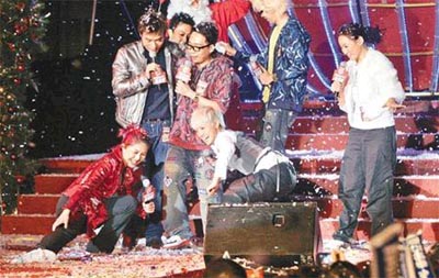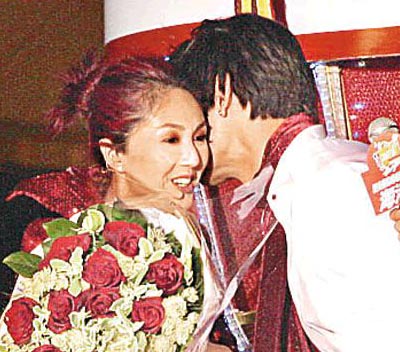 中新網(wǎng)12月26日電 據(jù)香港太陽報(bào)報(bào)道,楊千嬅、何韻詩與許志安等,前晚(12月24日)在尖沙咀廣東道舉行倒數(shù)派對,吸引逾萬市民圍觀!壓軸演出的千嬅,以一身紅彤彤的打扮搶鏡,大會安排一名高大俊男給她作“禮物”,令她興奮得哇哇大叫,還說:“Very Happy。ê荛_心。痹撁∧兴蜕硝r花及獻(xiàn)吻,但當(dāng)?shù)孟Ψ揭延屑沂,?#23301;即拒絕“愛意”。談及新年愿望,她暗示希望找到新戀情:“想找一件跟我般配的衣服!”