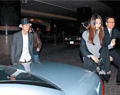 中新網(wǎng)1月2日電 陳冠希與女友Vincy前晚(12月31日)參加君悅酒店迎08派對(duì),陳冠希見(jiàn)到記者采訪時(shí)已露出黑面,并急步拖女友進(jìn)場(chǎng)。
