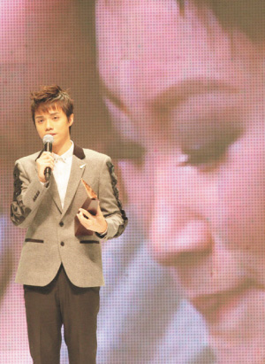 去年據(jù)聞由于公司之間的角力關(guān)系,令張敬軒最后惜敗在側(cè)田的手上,痛失男歌手銅獎,今年終于奪回這個獎,當(dāng)主持人宣布他拿獎的時候,他站立起身向所有歌手鞠躬致謝,上臺前他還特意與緋聞女友王菀之擁抱,他在臺上嗚咽地說:“多謝王菀之,我想跟你講,這個獎會與你分享,你在我心目中已經(jīng)是最受歡迎女歌手!奔磿r令臺下歡呼聲不絕。張敬軒還多謝跟他傳緋聞的關(guān)智斌,“多謝你不介意傳緋聞”。