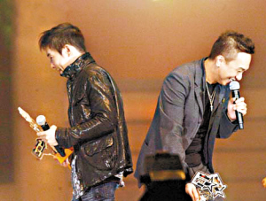 在領(lǐng)獎(jiǎng)時(shí),黃貫中領(lǐng)過獎(jiǎng)座馬上急速彈開,不欲與黃家強(qiáng)并排而站。至于黃家強(qiáng),當(dāng)記者問他已解散的Beyond會(huì)否復(fù)合?他無奈地說:“我們的心不一致怎樣復(fù)合?” (綜聞)