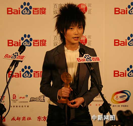 中新網(wǎng)北京1月13日電 (宋方燦 張?jiān)征? 1月12日晚,由百度主辦的“2007百度娛樂(lè)沸點(diǎn)年度頒獎(jiǎng)禮”在北京保利劇院隆重舉行。李宇春以百度貼吧貼子數(shù)近4000萬(wàn)的絕對(duì)優(yōu)勢(shì)當(dāng)仁不讓奪走最具號(hào)召力歌手獎(jiǎng)。