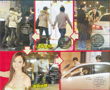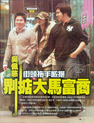 本月4日晚,吳佩慈在臺北世貿(mào)為車展彩排后,先與弟弟及年約30歲的“翻版霍啟剛”男友步行到“101”大樓里的餐廳用餐,直到晚上9時許才返回酒店停車場取車。在吳佩慈不熟練的駕駛技術(shù)下,原本只需十五分鐘便到達西門町的車程,足足花了四十分鐘。吳佩慈吩咐胞弟充當“泊車仔”后,便與男友十指緊扣到西門町內(nèi)的“阿宗面線”吃飯。舉動親密的二人,邊吃面邊談心,相當溫馨。其后,吳佩慈又再與“翻版霍啟剛”到中華路的錢柜卡拉OK,此時男方終于忍不住伸手摟住吳佩慈的小蠻腰,女方對男友突如其來的舉動毫不抗拒,更報以甜笑回應(yīng)。唱K至凌晨1時多,三人才離開,一臉依依不舍的吳佩慈,此時緊緊挽著“翻版霍啟剛”的手臂,直至要開車送男友返回酒店,才肯放手。